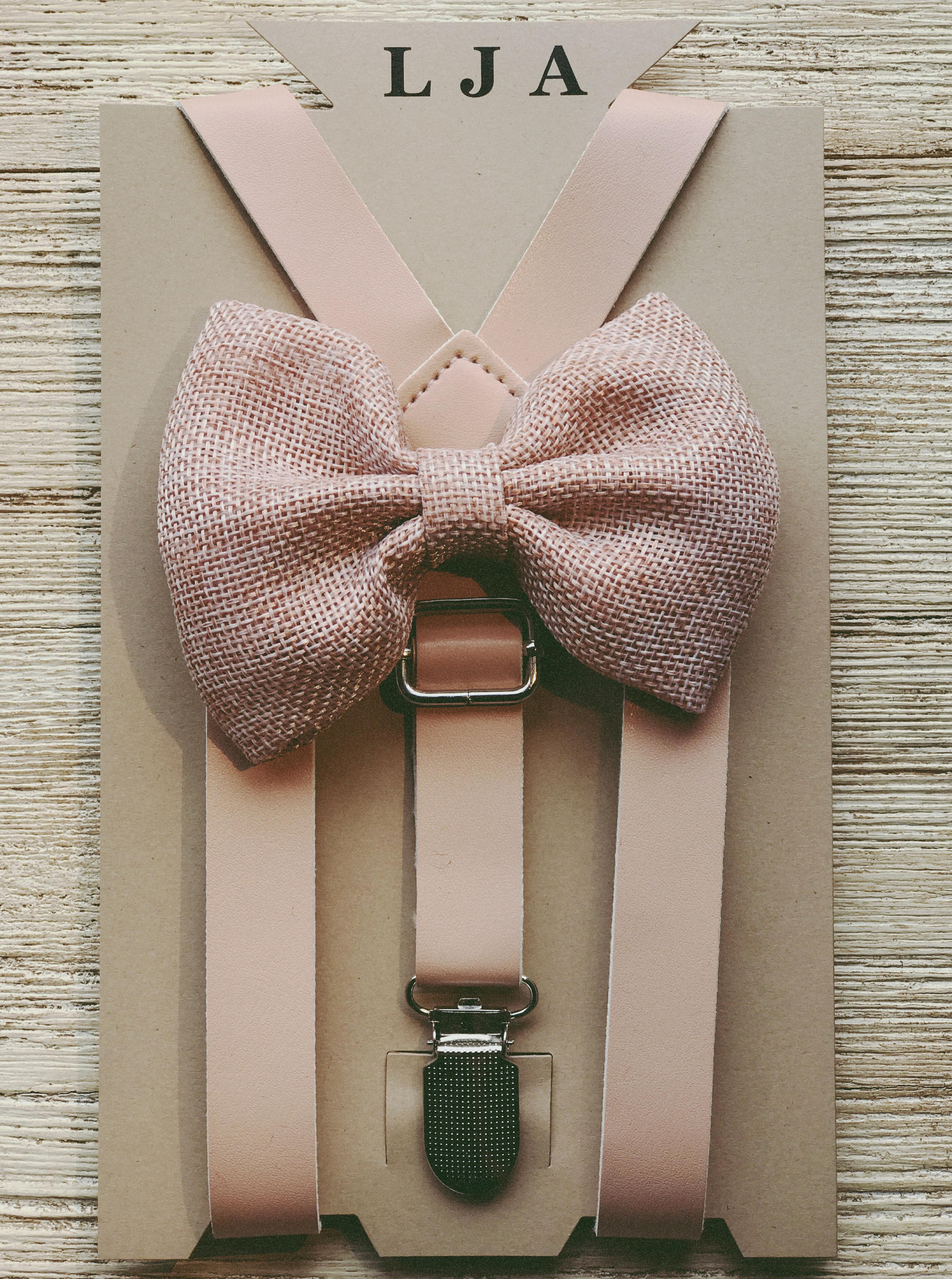 Blush Burlap Bow Tie With Vintage Tan Suspender Set London Jae Apparel